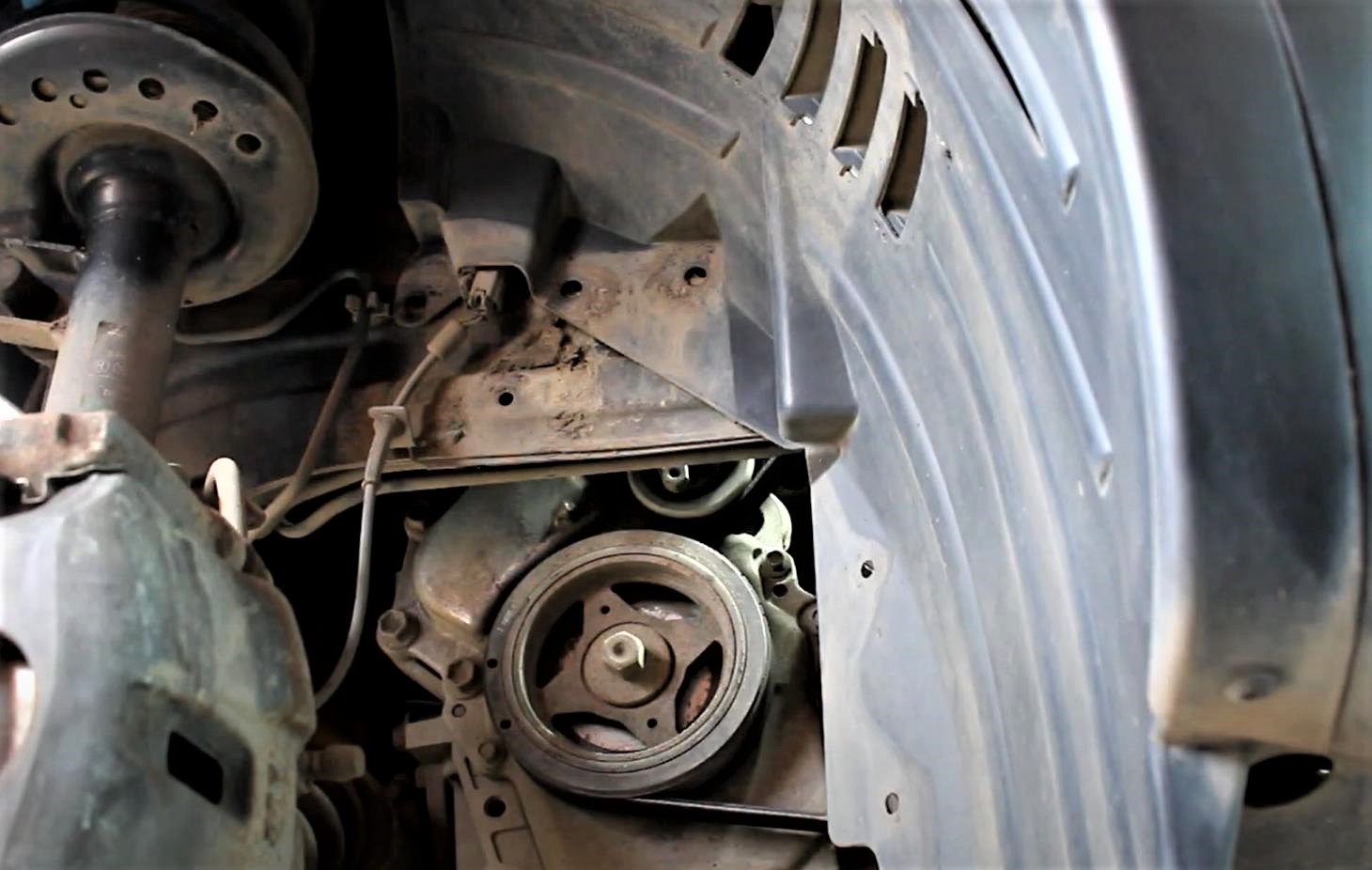- Готовим автомобиль для работы. На большинстве современных моделей Ниссан используется автоматический натяжитель ремня, доступ к которому возможен через правую колесную арку. Поэтому прежде всего мы поднимаем машину, снимаем правое колесо, подкрылок, пыльник двигателя и другие детали, открывая доступ к натяжителю. На моделях с двумя ремнями (например, на Ниссан Ноут), которые имеют свои натяжители, доступ к одному из них возможен сверху;