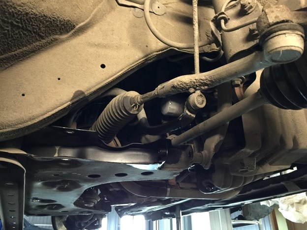 - Автомобиль поднимается на подъемнике, снимается нижняя защита двигателя, откручиваются детали, препятствующие доступу к рейке